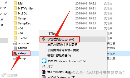 5.鼠标右击【setup】安装程序,选择【以管理员身份运行】。