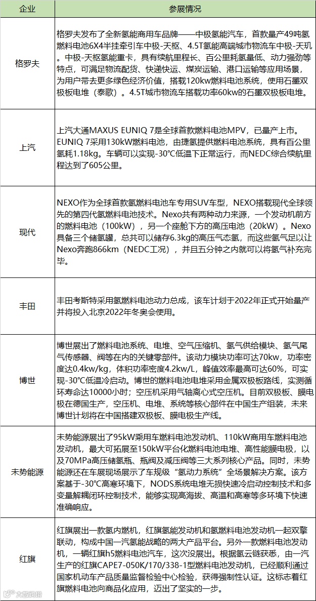 (2)零部件企业布局:以江苏清能、亿华通等为代表的深耕细分领域,持续提升产品性能构建优势,并双向拓展。本届车展的一大看点在于,博世明确了发展燃料电池的规划,并计划在国内搭建膜电极、空压机、电堆产线。