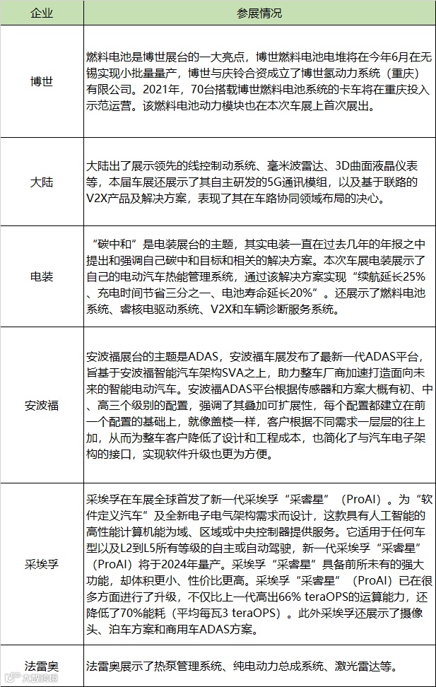 通过本届车展对于传统Tier1的观察我们可以看到: