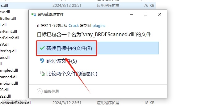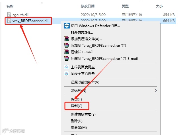 23.返回到【Crack】文件夹,鼠标右击【vray_BRDFScanned.dll】选择【复制】。