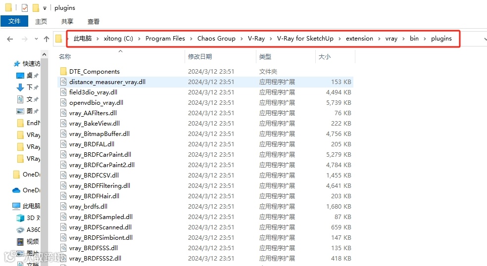 33.打开路径如下图所示:“C:\Program Files\Chaos Group\V-Ray\V-Ray 3.4 for SketchUp\extension\vrayappsdk\bin\plugins”