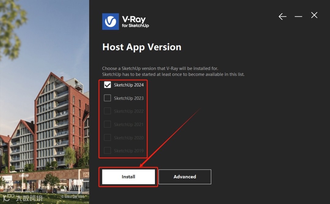 6.vray自动识别电脑上安装的草图大师软件,直接点击【Install】。
