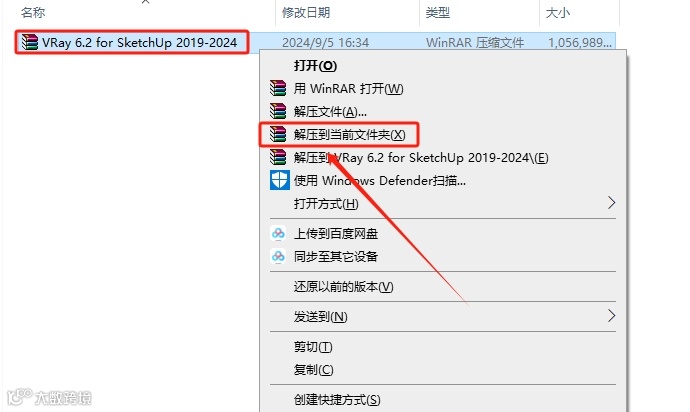 1.下载VRay软件安装包,鼠标右击压缩包选择【解压到当前文件夹】。