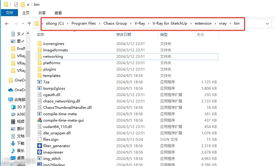19.打开路径如下图所示:“C:\Program Files\Chaos Group\V-Ray\V-Ray 3.4 for SketchUp\extension\vrayappsdk\bin”