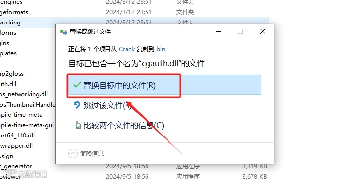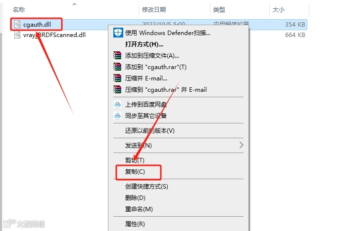 10.鼠标右击【cgauth.dll】文件选择【复制】。
