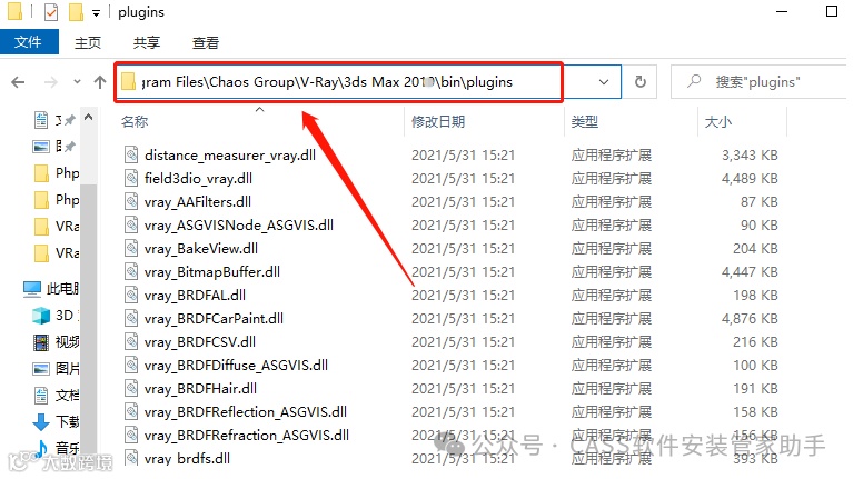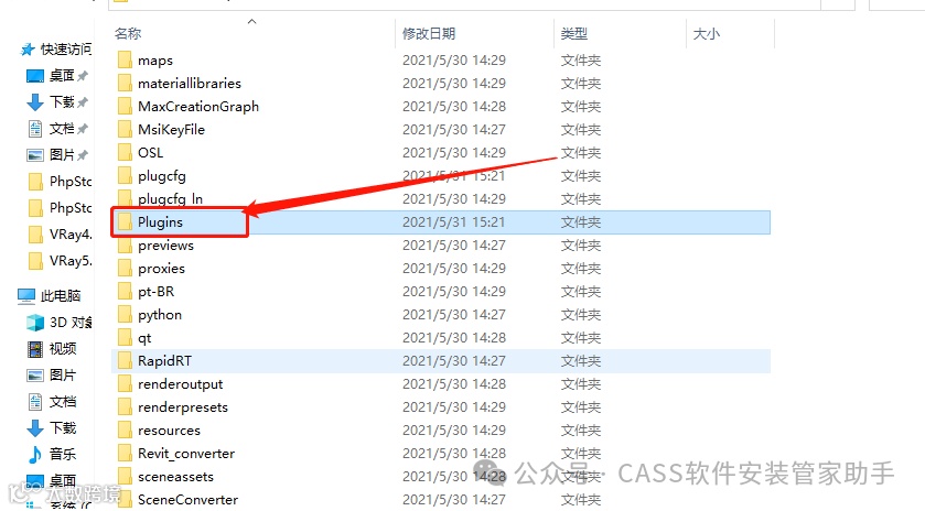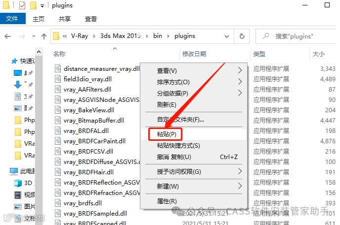 14.在打开的【Plugins】文件夹中,粘贴刚才复制的【vray_v42000_fix】文件。