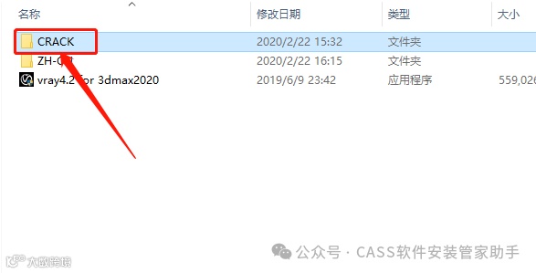10.返回到解压的【VRay4.2 for 3dmax2020】文件夹中,然后打开【Crack】文件夹。