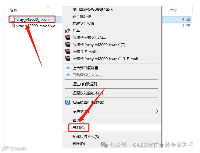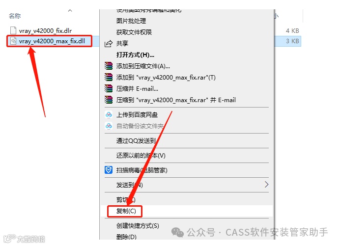 15.返回到【Crack】文件夹中,复制【vray_v42000_max_fix】文件。