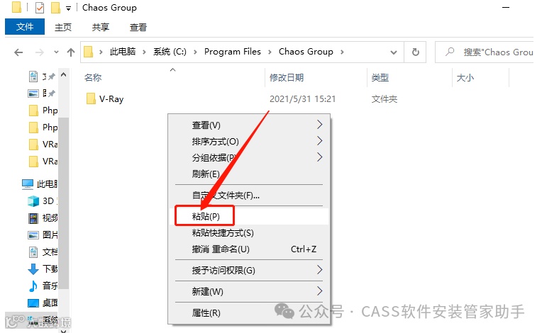 32.在当前文件夹粘贴刚才复制的【V-Ray】文件夹。