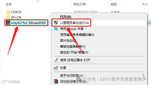 3.鼠标右击【vray4.2 for 3dmax2020】安装程序,选择【以管理员身份运行】。