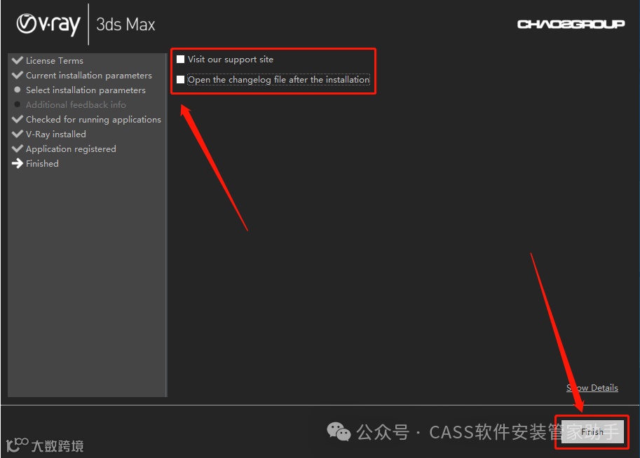 7.安装完成后取消勾选下图所示的选项,点击【Finish】。