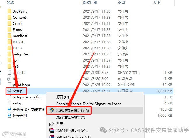 4.鼠标右击【setup】安装程序,选择【以管理员身份运行】。
