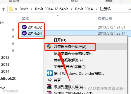 23.如果你的电脑是64位系统,则选择【2014x64】注册机,如果你的电脑是32位系统,则选择【2014x32】注册机,以64位系统为例,鼠标右击【2014x64】注册机选择【以管理员身份运行】。