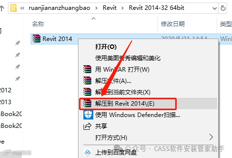 1.下载软件安装包,鼠标右击Revit 2014压缩包,选择【解压到Revit 2014】。