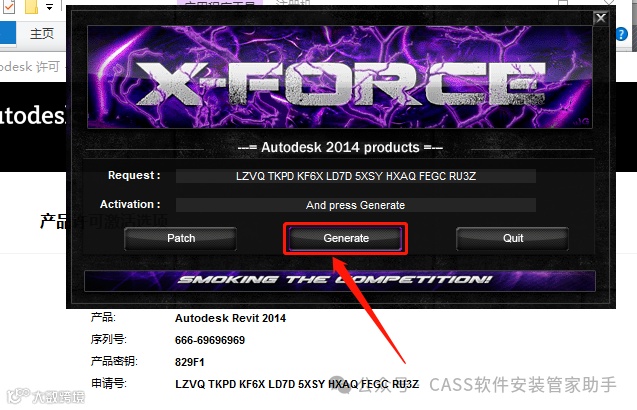25.使用Ctrl+C键复制申请号,然后使用Ctrl+V键粘贴到注册机里面的【Request】中(记得删除原Request中的内容),然后点击注册机左下角的【Patch】。