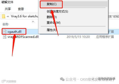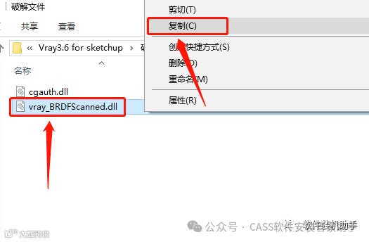 31.继续返回到【破解文件】文件夹,鼠标右击【vray_BRDFScanned.dll】选择【复制】。
