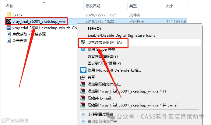 4.鼠标右击【vray_trial_36001_sketchup_win】安装程序,选择【以管理员身份运行】。