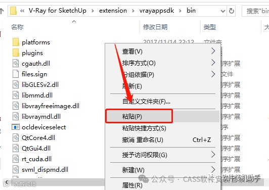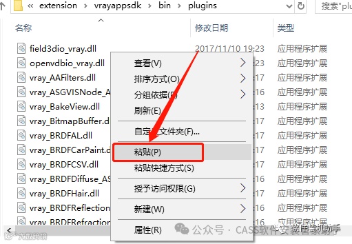 34.在打开的文件夹空白处,鼠标右击选择【粘贴】复制的【vray_BRDFScanned.dll】文件。