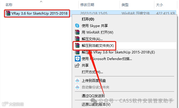 1.下载软件安装包,鼠标右击软件压缩包,选择【解压到Vray3.6 for SketchUp】。