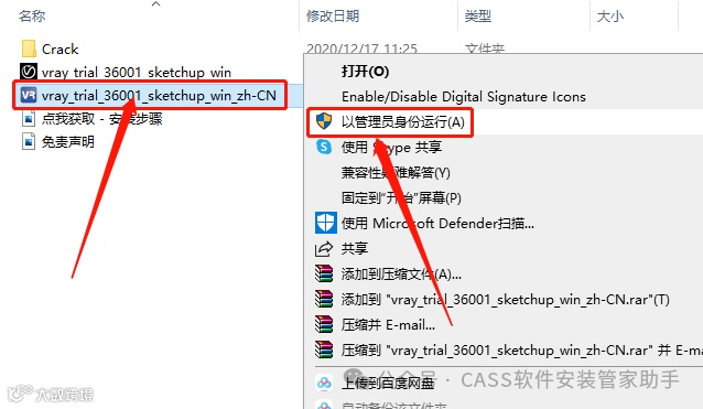 13.返回到之前解压的文件夹中,鼠标右击【vray_trial_36001_sketchup_win_zh-CN】,选择【以管理员身份运行】。