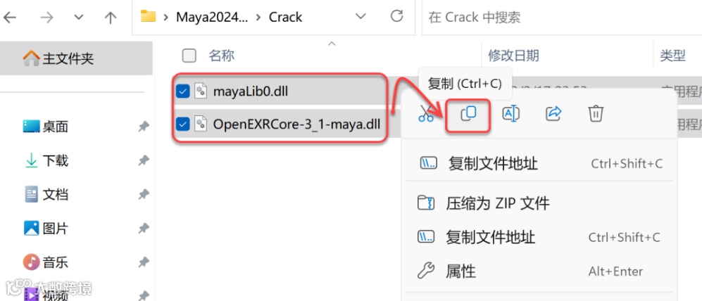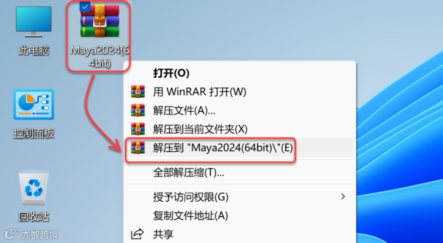 1.鼠标右击【Maya2024(64bit)】压缩包(win11及以上系统需先点击“显示更多选项”)【解压到 Maya2024(64bit)】。