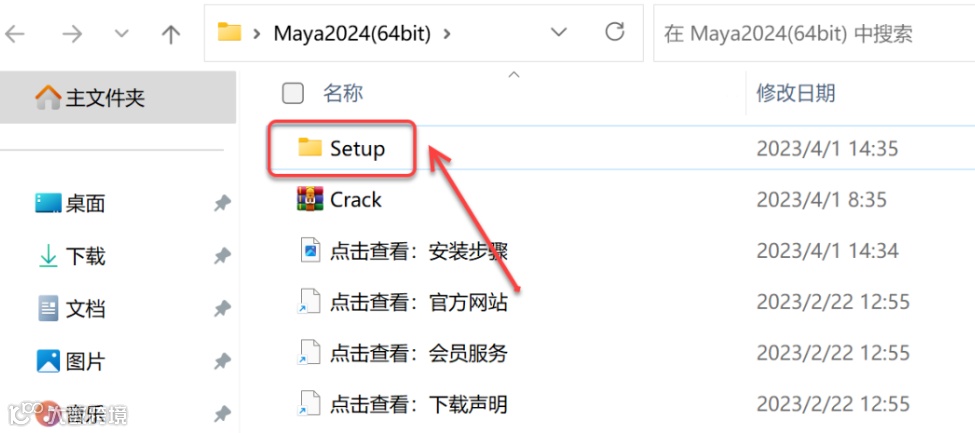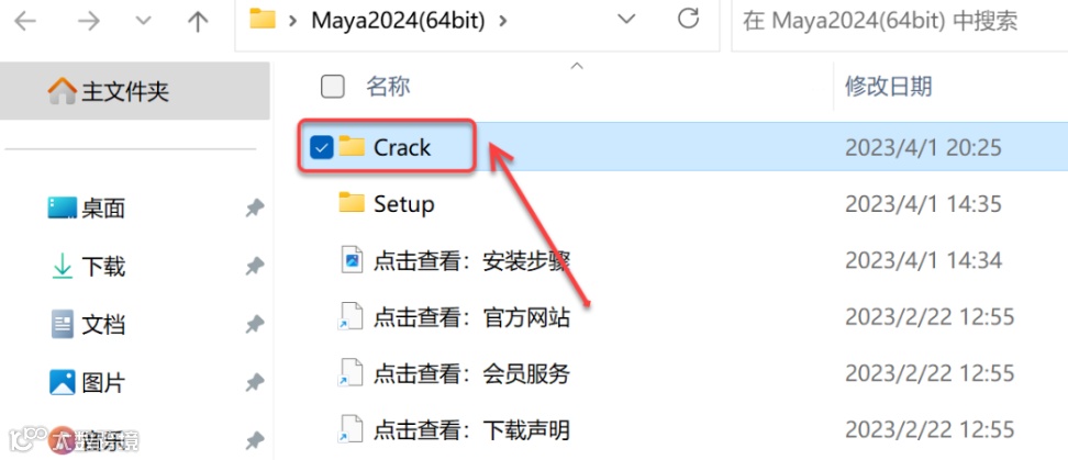 13.打开安装包解压后的【Maya2024(64bit)】文件夹,双击打开【Crack】文件夹。
