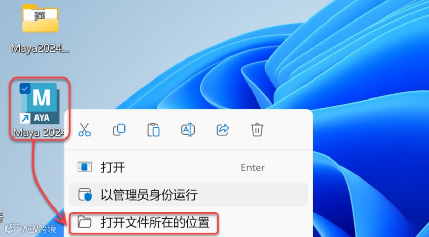 15.鼠标右击桌面【Maya2024】图标选择【打开文件所在的位置】。
