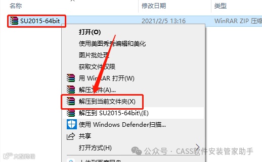 1.下载SketchUp 2015安装包,鼠标右击压缩包选择【解压到当前文件夹】。