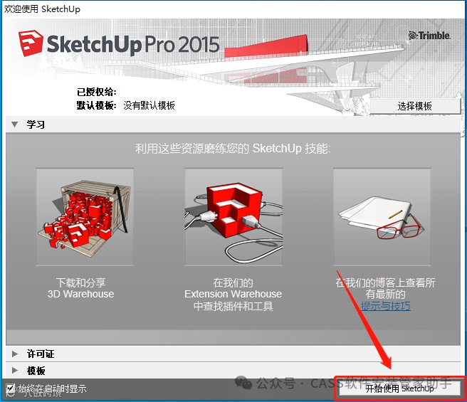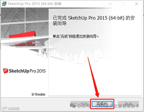 10.安装好后点击【完成】,此时安装好的SketchUp 2015软件为试用版。