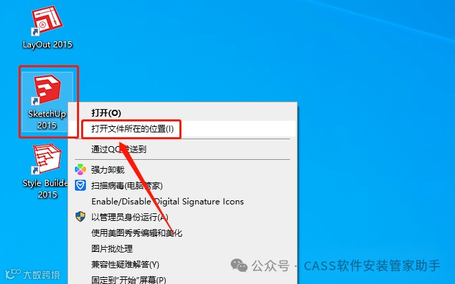 13.在桌面上找到SketchUp 2015软件图标,鼠标右击选择【打开文件所在的位置】。