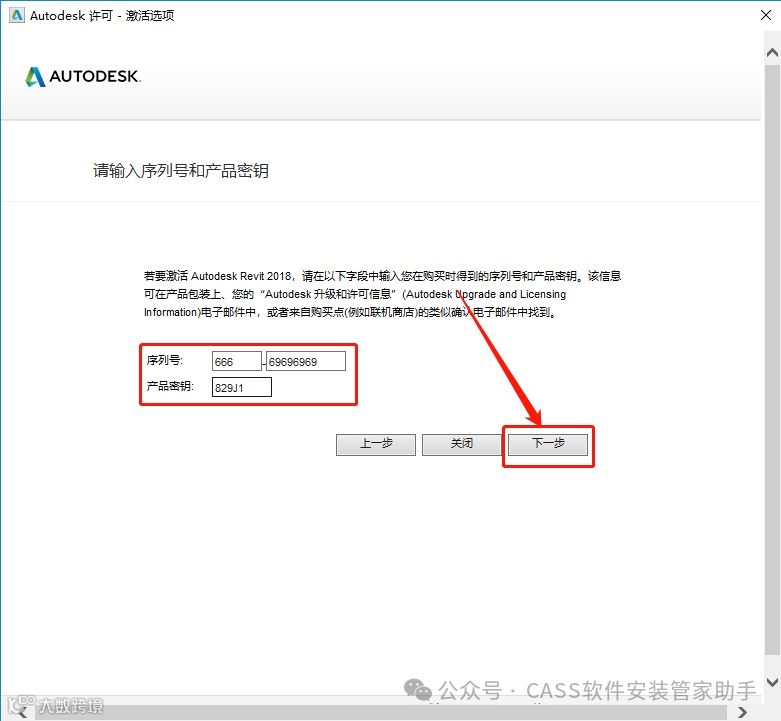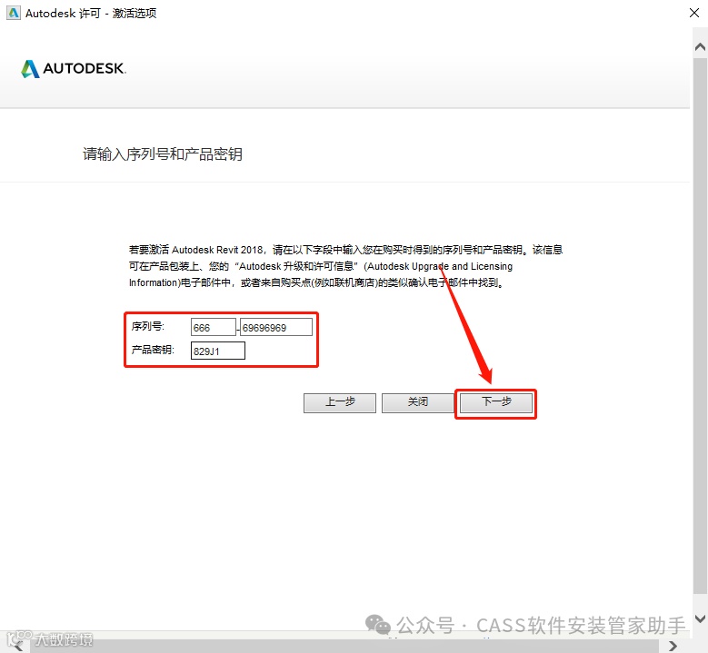 21.输入序列号:666-69696969 ,产品密钥:829J1 ,输入好点击【下一步】。
