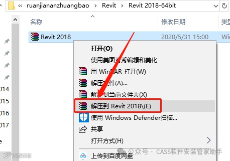 1.下载软件安装包,鼠标右击Revit 2018压缩包,选择【解压到Revit 2018】。