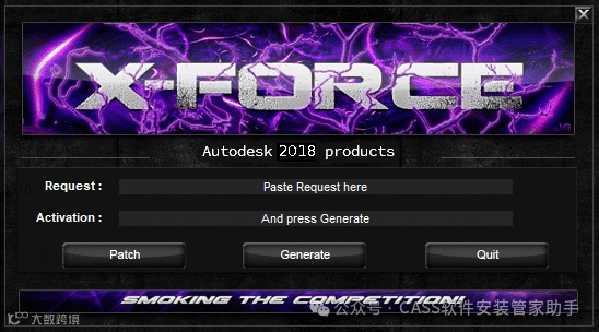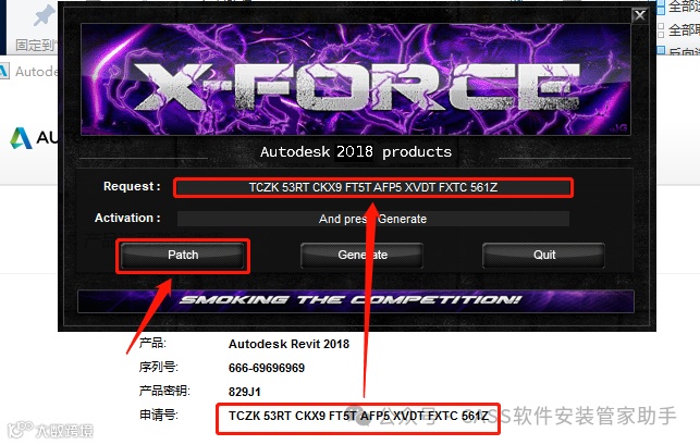 26.使用Ctrl+C键复制申请号,然后使用Ctrl+V键粘贴到注册机里面的【Request】中(记得删除原Request中的内容),点击注册机左下角的【Patch】。