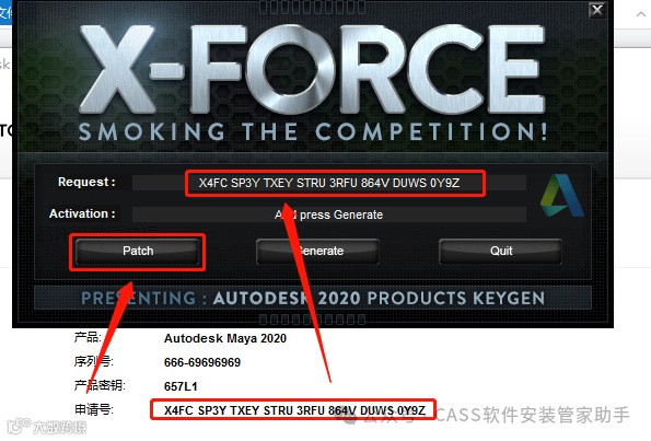 26.使用Ctrl+C键复制申请号,然后使用Ctrl+V键粘贴到注册机里面的【Request】中(记得删除原Request中的内容),然后点击注册机左下角的Patch