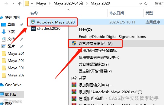 3.鼠标右击【 Autodesk_Maya_2020】安装程序 ,选择【以管理员身份运行】