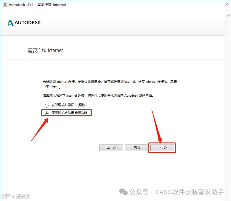 16.选择【使用脱机方法申请激活码】,然后点击【下一步】