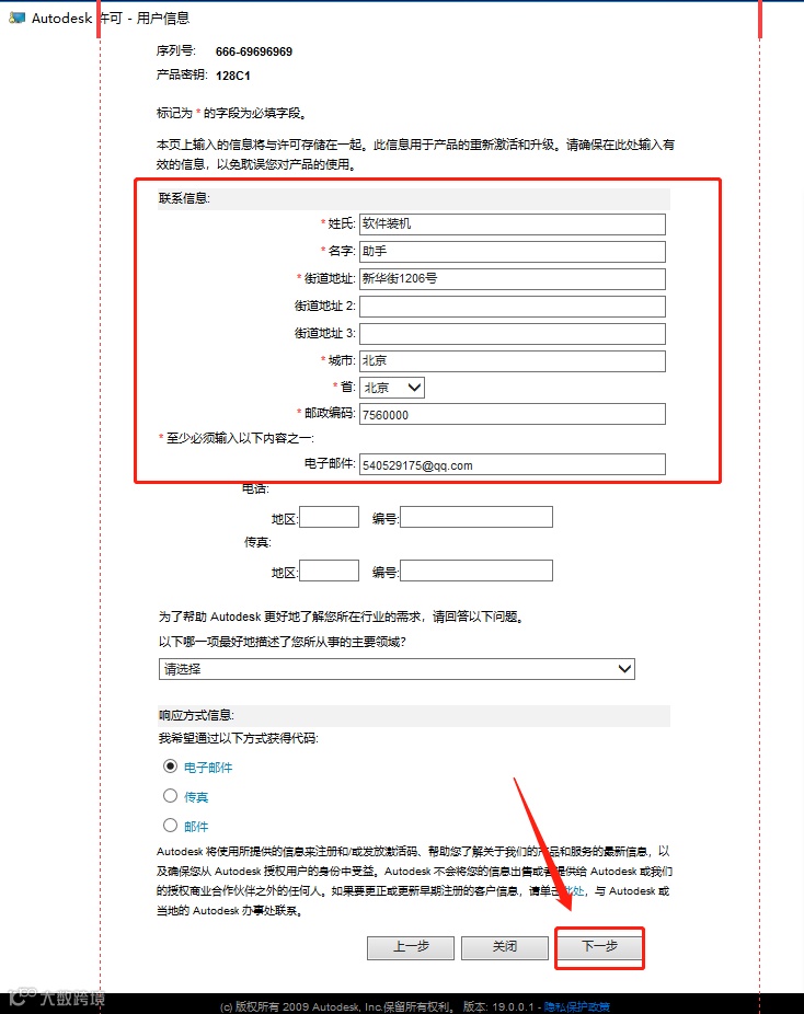 23.填写用户信息(随便填写),填写好后点击【下一步】。