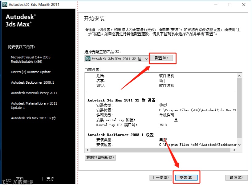 8.这里可以点击配置设置软件的安装路径,如果不设置,默认安装路径位为系统C盘,直接点击【安装】。