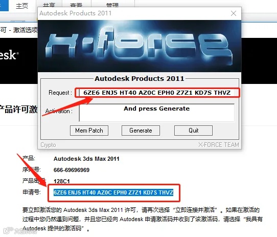 31.粘贴好申请码后点击注册机左下角的【Mem Patch】。