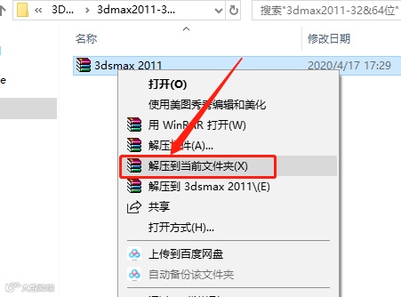 1.下载【3dmax 2011】安装包,鼠标右击压缩包选择【解压到当前文件夹】。