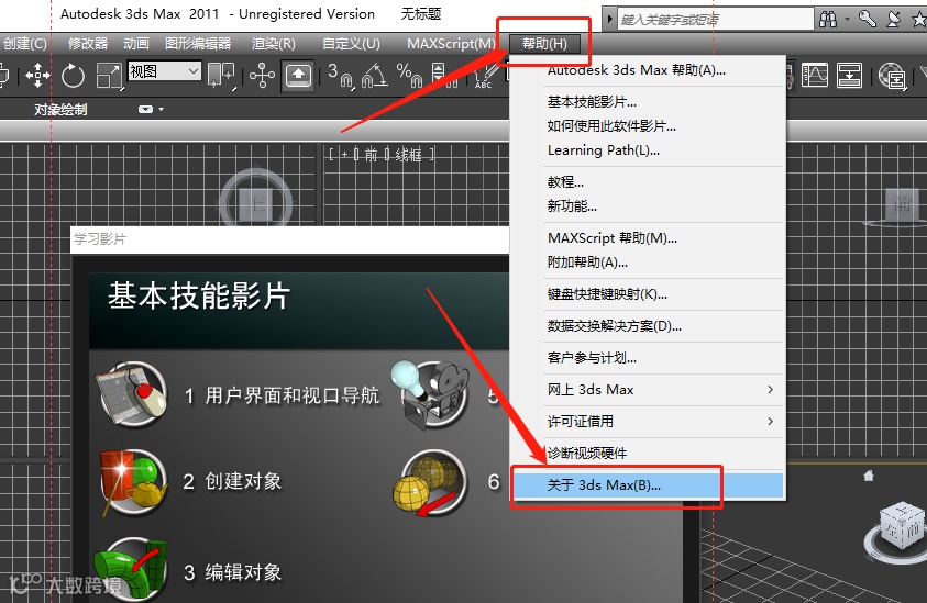 17.点击顶部菜单栏中的【帮助】,然后点击【关于3ds Max】。