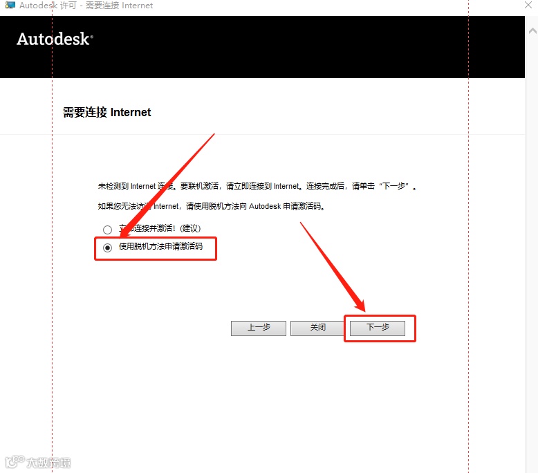 21.选择【使用脱机方式申请激活码】,然后点击【下一步】。