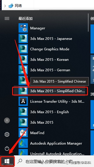 13.在桌面左下角开始菜单里选择打开3ds Max 2015-Simplified Chinese。