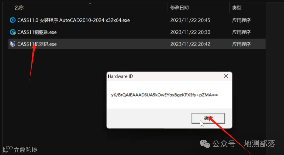 7.运行“CASS11机器码.exe”,运行成功后机器码自动复制到剪贴板,直接粘贴到注册机授权。之后用该机械码自行获取授权文件或在社群留言获取。
