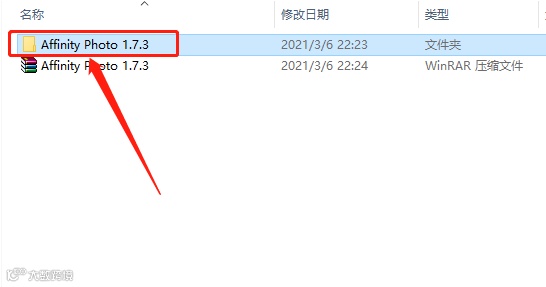 2.打开【Affinity Photo 1.7.3】文件夹。