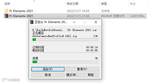 2.等待压缩包【Pr Elements 2021】解压完成。