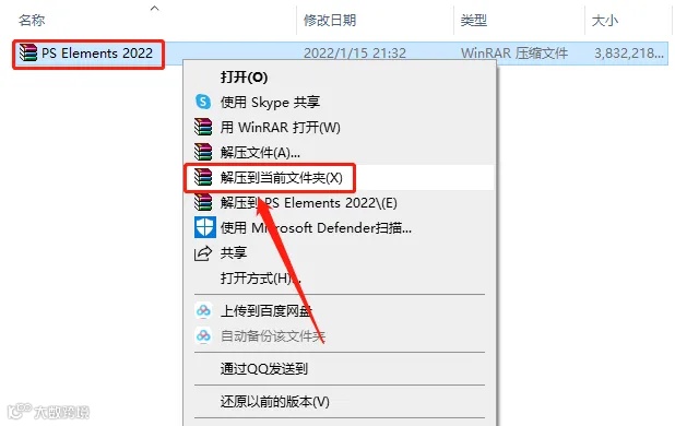 1.下载并解压Photoshop Elements软件安装包。