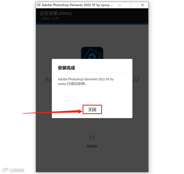 10.安装进度走完后点击【关闭】。