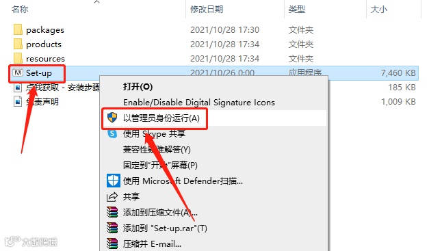 4.在打开的文件夹中,鼠标右击【Set-up】,选择【以管理员身份运行】。