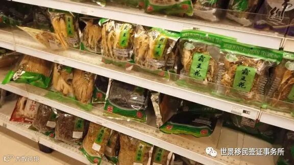 还有各种东西南北的干货基本上能够想到的东西也都能买到,香菇、茶树菇,各种各样的香菇、木耳、鸡骨草都有,还有陈皮、霸王花,总之基本上在国内能够想到的,这里都有了。